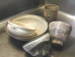 | ●使いおろす前にたっぷりと用意した熱湯に器と一握りの米を入れ、40分ほど煮立て下さい。煮沸かすことで器肌のあいだにぬかが入り込んで、汚れや匂いがつくなどのトラブルを防ぐことが出来ます。 ●使う時の手入れとして、使う前に1時間くらい水かぬるま湯に浸け水分を充分すわせて使用すると汁気や油分が器に染み込むのを防ぐことが出来ます。 ●粉引きの器では、ぬるま湯か水に浸けた時グレーっぽい斑点が出たり、細かいひび割れ【貫入】が入るが、水分が土に浸透している現象なので心配いりません。 |