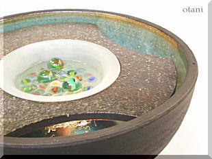 (水鉢/水中灯りモーター/陶板/ガラスボウル) |