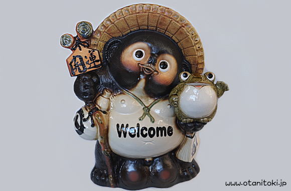 身代わりになってくれる大きな福狸と無事にかえる福カエルで強い味方です。(高さ65cm)